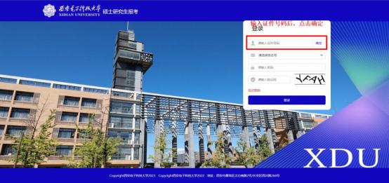 3.首次登录输入本人身份证号并点击右侧“确认”键,系统将自动 匹配初始报名号(推免生无报名号,系统匹配本人 15 位考生编号), 登录密码为本人考生编号。申请初试成绩复核时进行密码修改的,按 照修改后的密码登录。