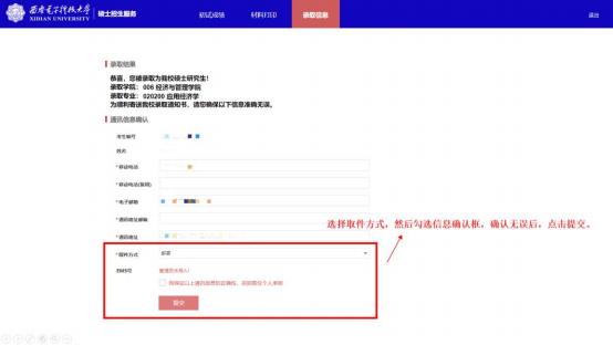 3.确认信息无误后选择取件方式: 自取或者邮寄,勾选后提交。