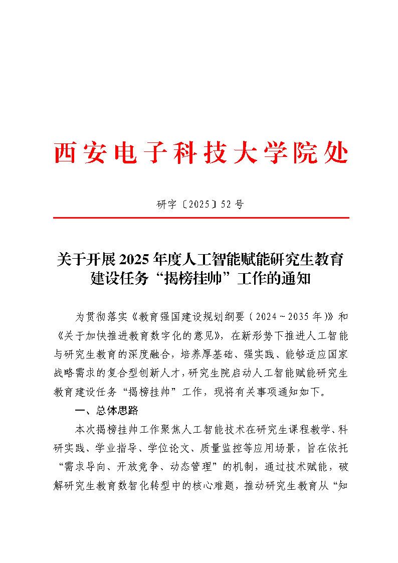 上一篇:西安电子科技大学关于受理2025年6月研究生结业申请的通知 下一篇:西安电子科技大学关于修(制)订2025版研究生培养方案的通知