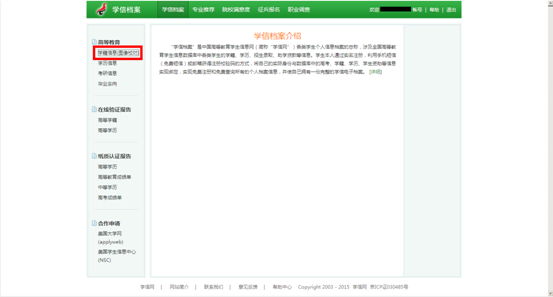 四、注册完成后,登录进入个人“学信档案”页面,单击“学籍信息(图像校对)”查询个人学籍信息;