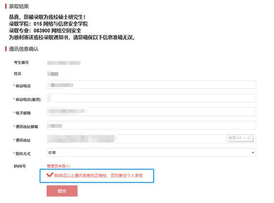2021年硕士研究生录取通知书邮寄信息确认操作流程