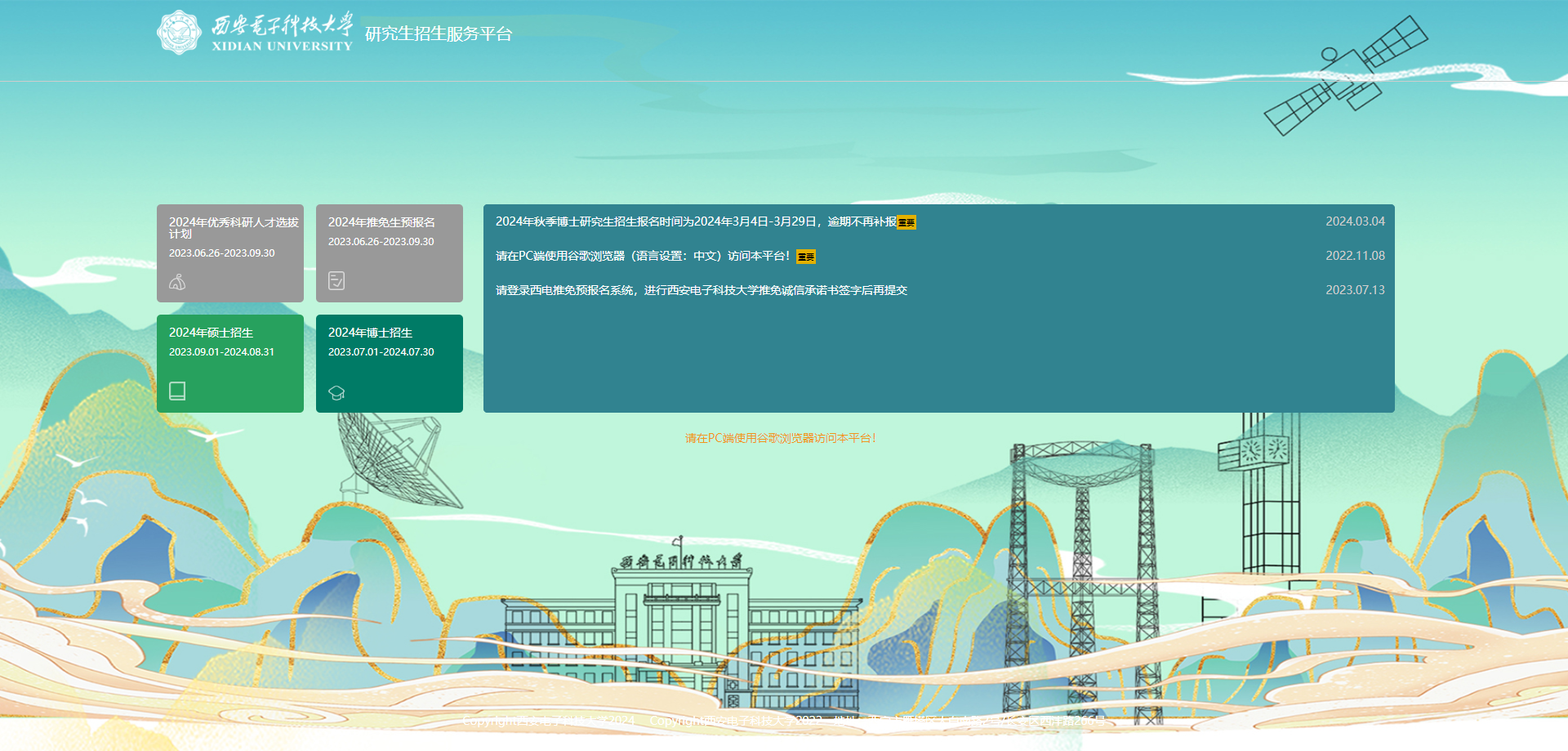 1.登录西安电子科技大学研究生招生服务平台(请选择谷歌浏览器登录):