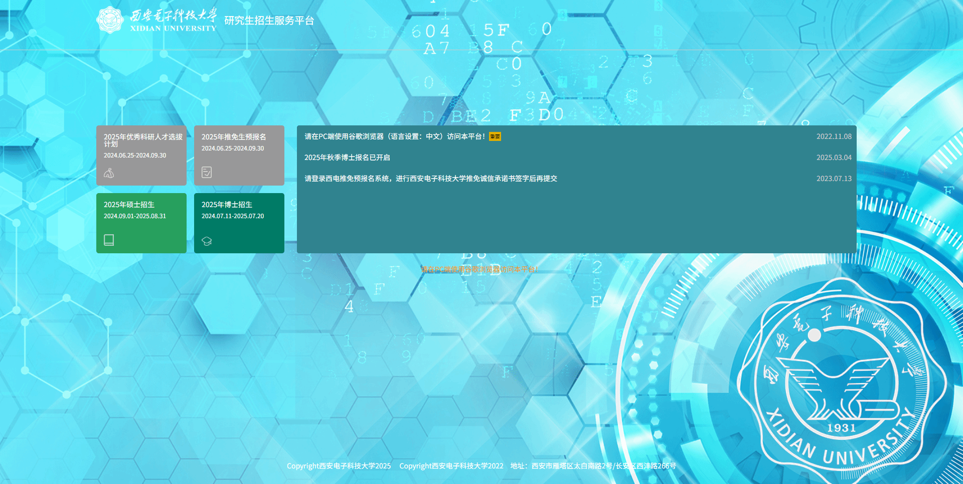 1.登录西安电子科技大学研究生招生服务平台(请选择谷歌浏览器登录):