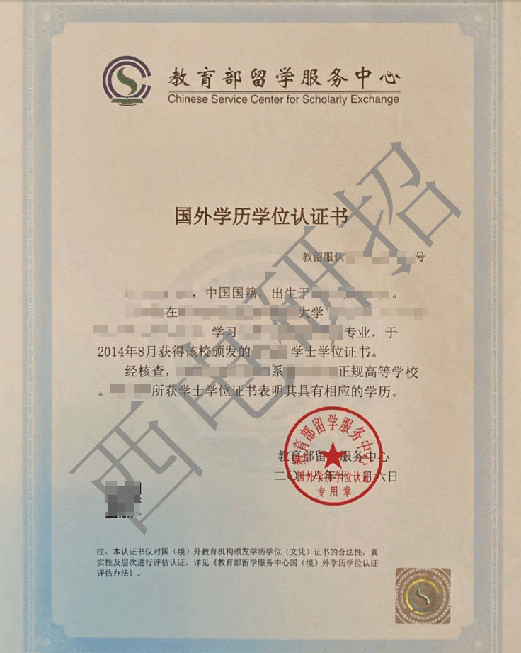 《国(境)外学历学位认证书》示例照片