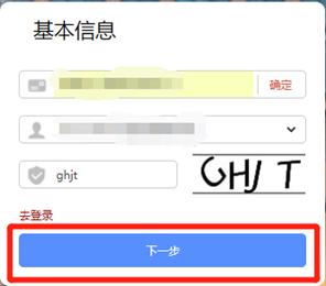 4.点击后出现下图所示,继续输入证件号码,点击确定自动生成报名号,点击下一步进行密码修改。