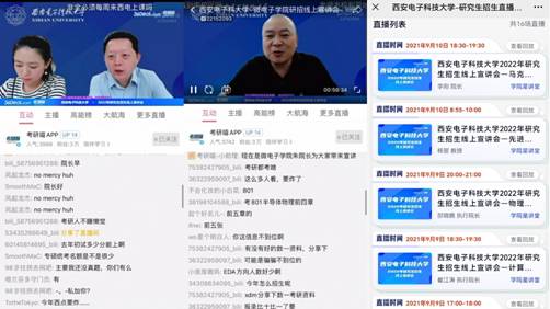 9月9日至9月12日,组织开展2022年研究生招生线上宣讲直播周活动,16个学院的院领导及知名专家学者受邀进入直播间,在线为各位考生全面介绍各学院情况、人才培养、科研实力、就业前景和奖助学金体系等基本状况,帮助考生更好地了解各学院研究生招生与培养相关信息。线上宣讲会吸引了来自全国各地高水平大学的众多考生观看互动,直播浏览量高达8.5万次,直播现场考生踊跃提问,互动热烈,弹幕评论近5000次。为更好地服务考生,研究生院将直播视频进行整合发布,考生可关注“西电研招”微信公众号,查看直播回放。