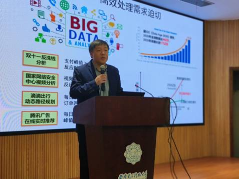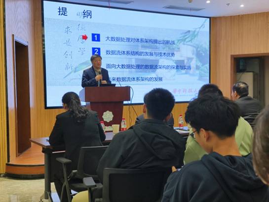 4月12日上午,由研究生院/卓越工程师学院筹备举办的“大学者讲前沿”系列讲堂在南校区会议中心101正式启动。第一讲邀请了华中科技大学国家杰出青年基金获得者金海教授为研究生们带来了题为《面向大数据高效处理的数据流体系结构》的学术报告。