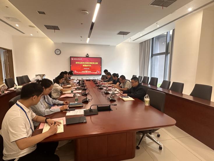 5月13日上午,研究生院党支部在南校区会议中心113会议室举办党纪学习教育专题读书日活动,组织全体党员在前期自学的基础上,专题学习《中国共产党纪律处分条例》内容和精神实质,做到学纪、知纪、明纪、守纪。校纪委委员刘欣作为支部联系委员列席了会议,会议由党支部副书记付凯元主持。