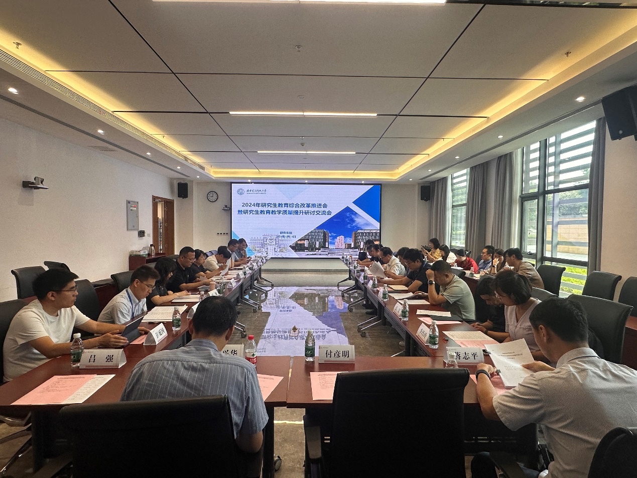 张进成就深入推进研究生教育综合改革、全面提升研究生教育教学质量作安排部署。他指出,研究生教育是国民教育体系的顶端,标志着一个国家科学技术与经济竞争的能力,只有高质量的研究生教育才能引领国际研究生教育发展潮流,增强国家综合实力和竞争力。在新的时代背景下,学校启动2024年研究生教育综合改革专项计划工作,就是要鼓励各学院深刻把握研究生教育发展规律,聚焦高层次人才培养机制、研究生管理模式及研究生教育教学中存在的问题,开展深入探索和研究,不断提升学校人才培养质量。他强调,一是要将研究生教育综合改革工作作为落实专项行动的重要举措,加强对教育教学体制机制改革创新的探索;二是要深化建设一流研究生培养体系,进一步完善卓越工程师培养的管理体制机制;三是要持续深化研究生课堂教学改革,打造高水平研究生核心课程群,有力支撑高水平人才培养;四是要狠抓学位论文过程管理工作有效监控和提升学位论文质量;五是要加强研究生教育教学模式的总结凝练,探索形成具有引领示范效果的典型经验,为研究生教育培育高质量、高水平的教学成果。张进成强调,全面深化研究生教育综合改革是打造一流研究生教育体系的重要途径和关键抓手,各单位要以时不我待、只争朝夕的紧迫感和责任感,统筹兼顾,协调推进,谋划好各项目的推进实施,重内涵、提质量、强特色、出成果,为学校创建特色鲜明世界一流大学提供坚实的支撑。