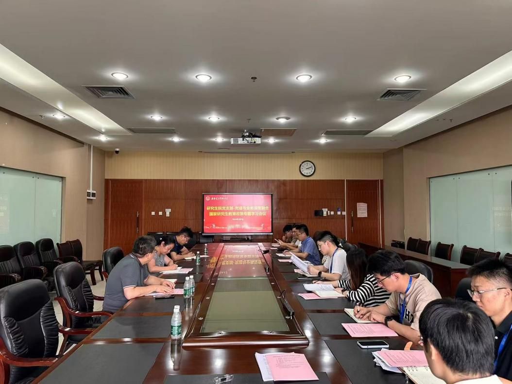 在建党103周年之际,为进一步增强党员纪律规矩意识,7月1日,研究生院党支部在南校区办公楼603会议室召开党建与业务融合国家研究生教育政策专题学习会议,支部书记王爽同志为全体党员讲授党纪学习教育专题党课。研究生院党支部全体党员(含预备)参加会议,会议由研究生院党支部副书记付凯元主持。