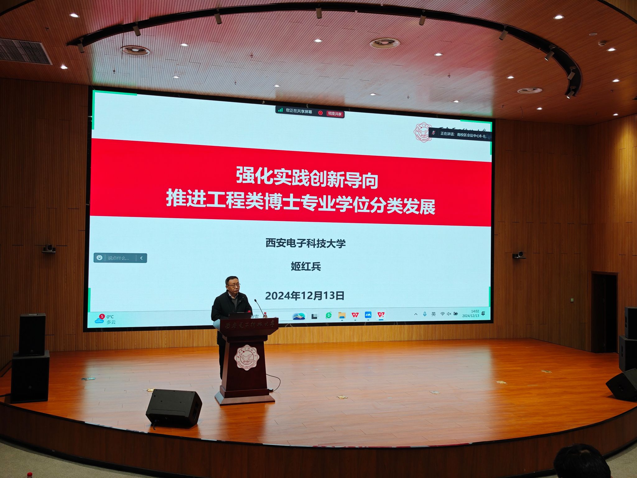论坛上,姬红兵教授首先围绕“强化实践创新导向 推进工程类博士专业学位分类发展”主题,结合《中华人民共和国学位法》立法精神,对《工程类博士研究生学位论文与实践成果基本要求(试行)》编制的背景与意义、内涵与要求以及相关管理流程等方面进行了解读。他谈到,工程类博士专业学位教育主要是根据国家重大发展战略需求,培养某一专门领域的高层次应用型未来领军人才,基本要求的发布,对于推进专业学位研究生培养模式改革,完善工程类博士专业学位研究生教育评价体系,加快自主培养卓越工程技术人才具有重要意义。姬红兵教授最后对工程博士教育总结到,要正确认识工程博士培养“工程问题,实效检验”的特征与定位,“同一层次,不同类型”的与工学博士的区别,“产教融合,协同育人”的联培过程,“技术创新,实践创新”的学位论文与实践成果特点。