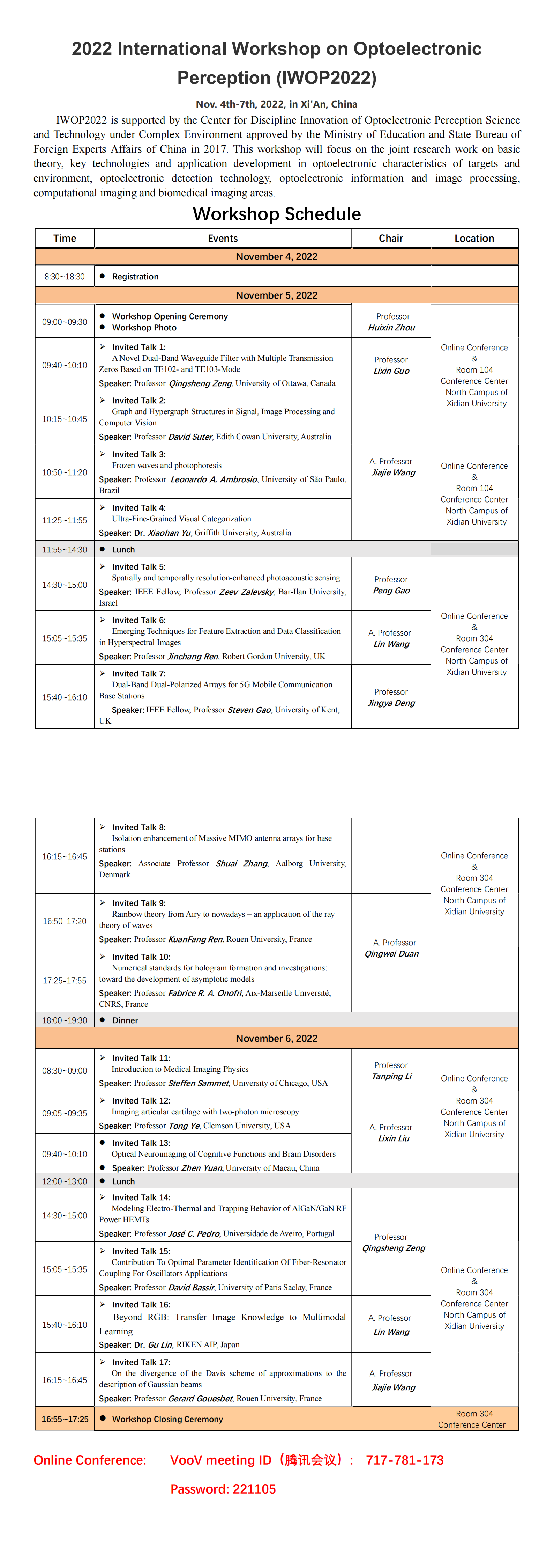 讲师 Steven Gao教授等专家学者 时间 2022年11月4日-7日