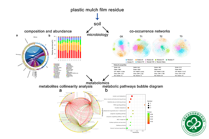 近日,中国农业科学院棉花研究所崔金杰研究员团队开展了地膜残留短期影响与生物降解研究,联合微生物学和代谢组学技术,揭示了棉田地膜微塑料残留在短期内对土壤微生物及其代谢功能的影响规律,挖掘出一些具有潜在地膜微塑料降解功能的细菌,为陆地土壤中微塑料残留的安全性评估和农业面源污染降解治理提供了重要理论基础。相关研究成果以“Integrated microbiology and metabolomics analysis reveal plastic mulch film residue affects soil microorganisms and their metabolic functions”为题发表在国际知名期刊《危险材料杂志(Journal of Hazardous Materials)》(IF=10.588)。
